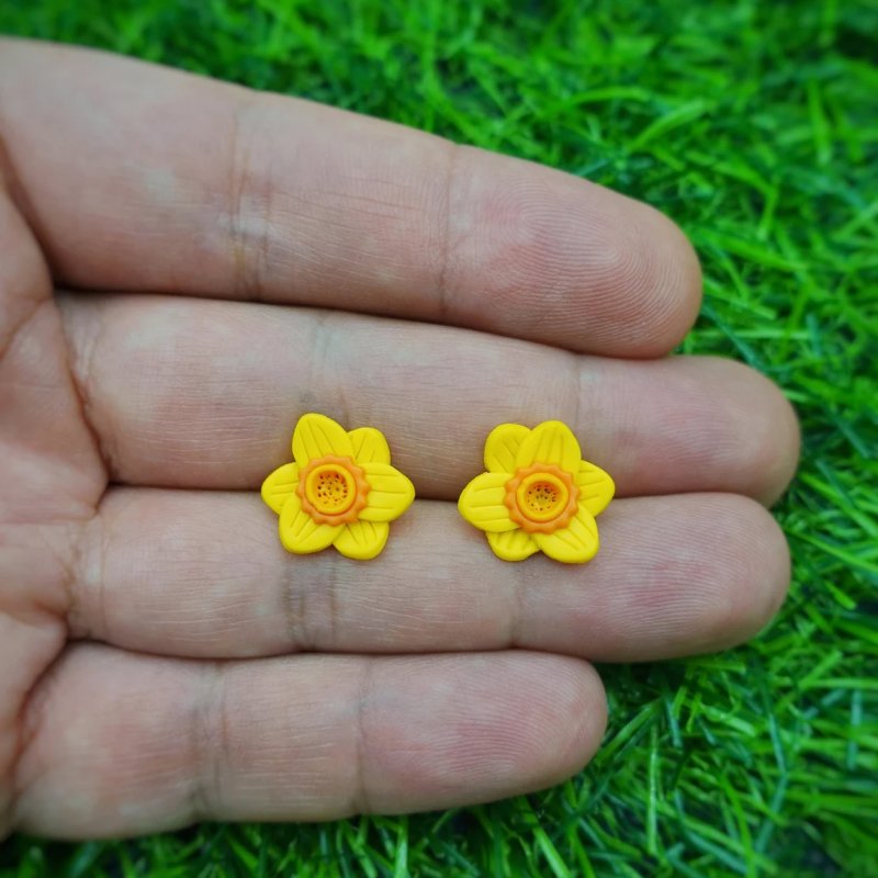 DAFFODIL STUD EARRINGS | Handmade with Polymer Clay | Mothers Day Gift, Easter Present, Spring | Flower, Hypoallergenic, Cute