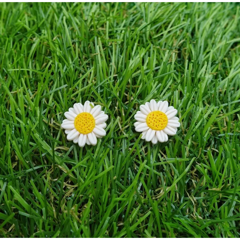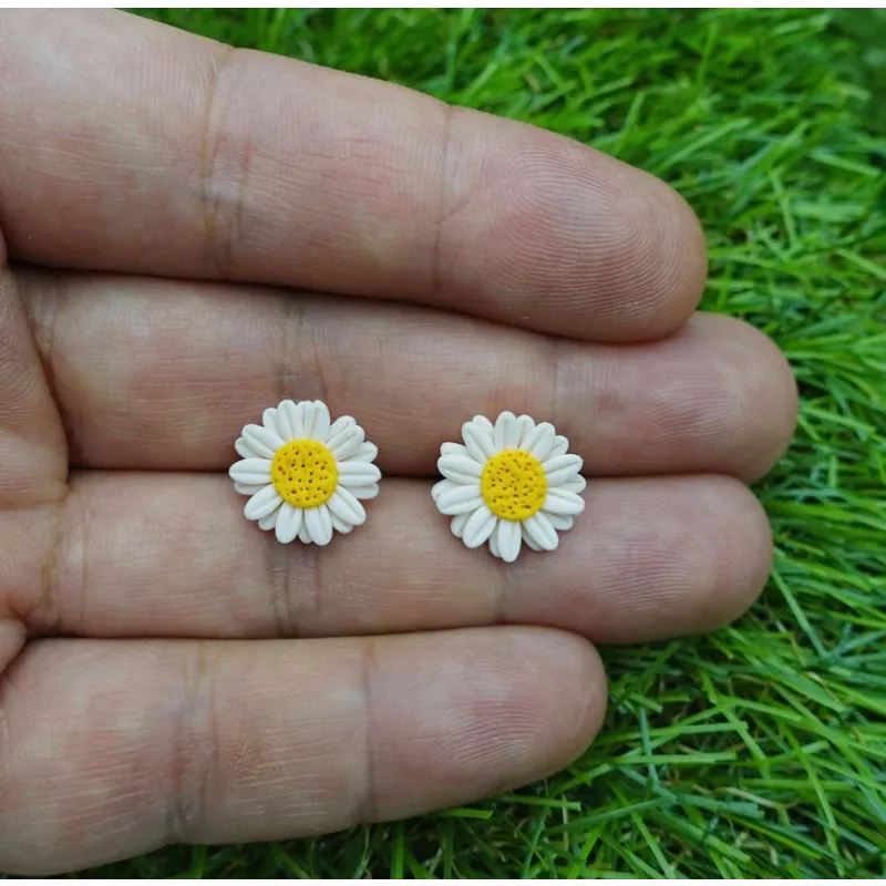 Daisy flower stud earrings, lovingly handmade with Polymer Clay and Stainless Steel.