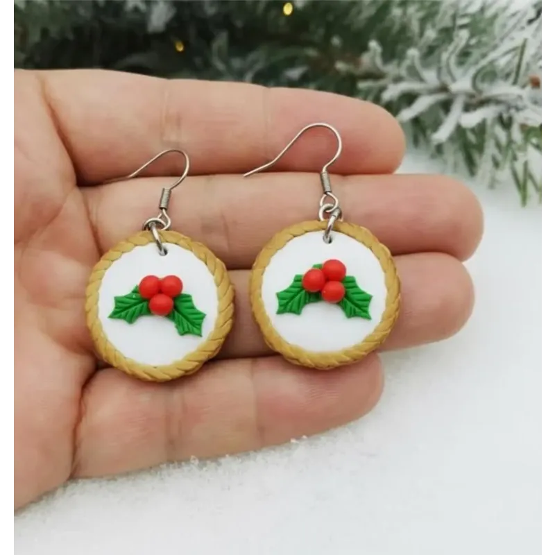 HOLLY BAKEWELL EARRINGS | Christmas Icing Cake Dangle Earrings | Handmade with Polymer Clay | Berry, Cute, Stocking Filler, Gift, Present