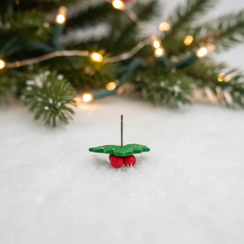 HOLLY STUD EARRINGS | Christmas Snow Holly Earrings | Handmade with Polymer Clay | Stocking Filler, Gift, Present, Cracker, Icing Dusting