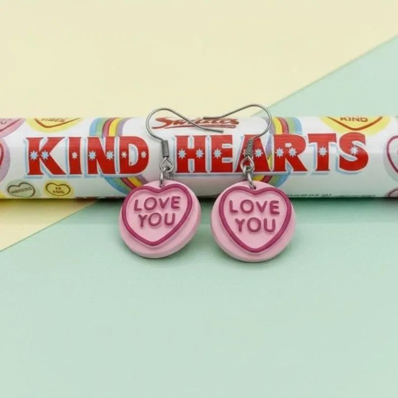 Love / Kind Hearts Sweets earrings, lovingly handmade with Polymer Clay and Stainless Steel.