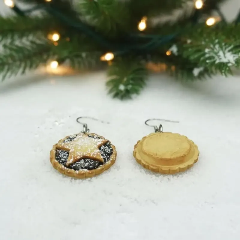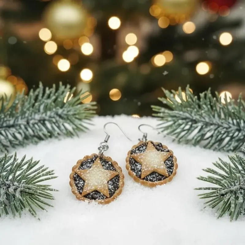 Christmas Mince Pie with Star crust dangle earrings, lovingly handmade with Polymer Clay and Stainless Steel. (Sterling Silver option available)