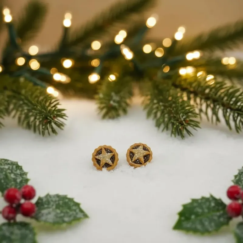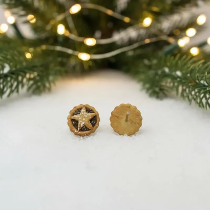 MINCE PIE STUD EARRINGS | Christmas Mince Pies Stud Earrings | Handmade with Polymer Clay | Stocking Filler, Winter, Festive, Gift, Present, Cute
