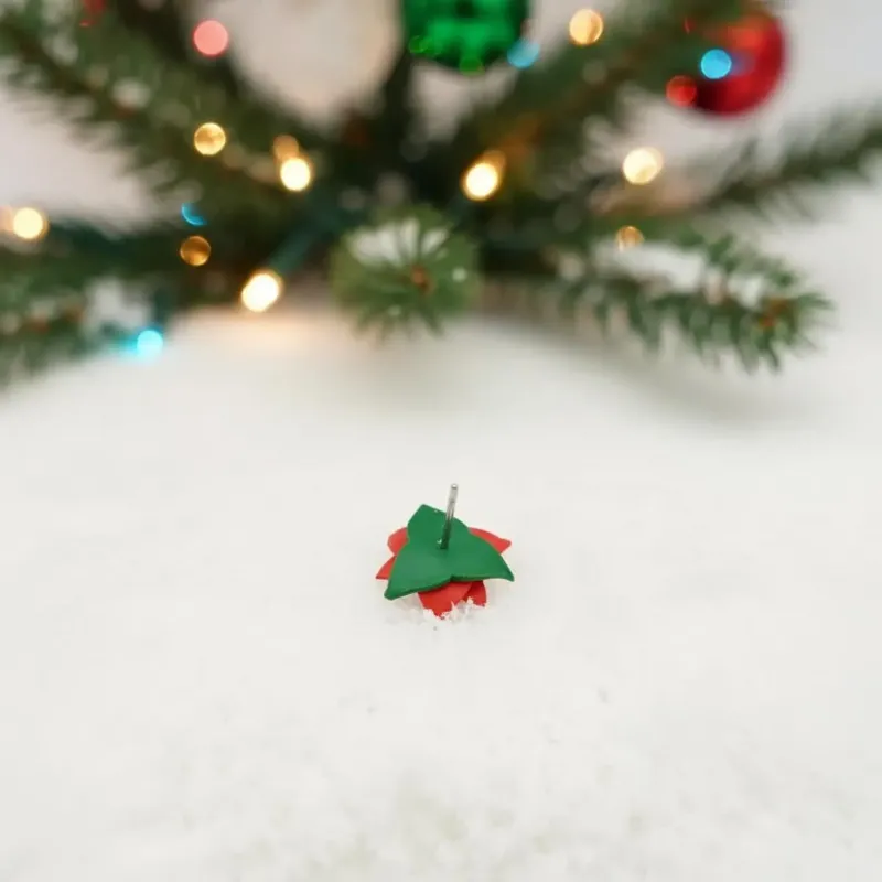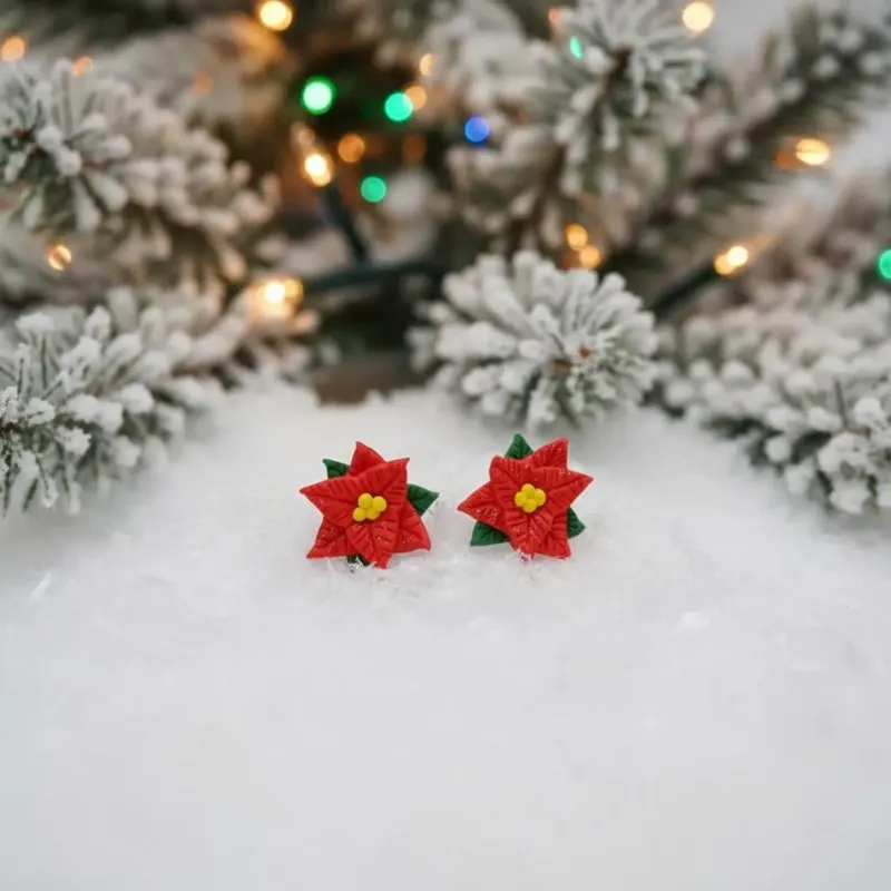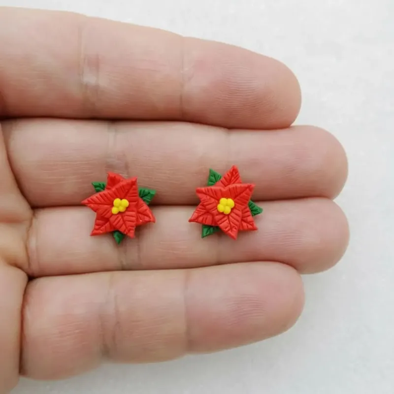 Poinsettia Christmas stud earrings, lovingly handmade with Polymer Clay and Stainless Steel.
