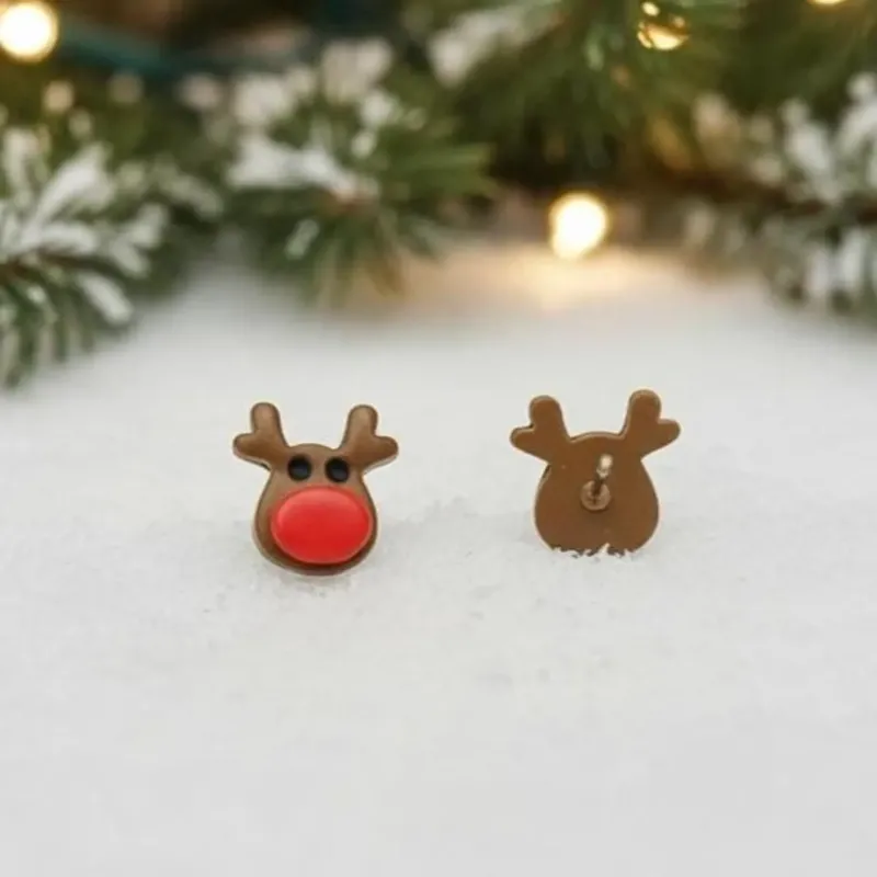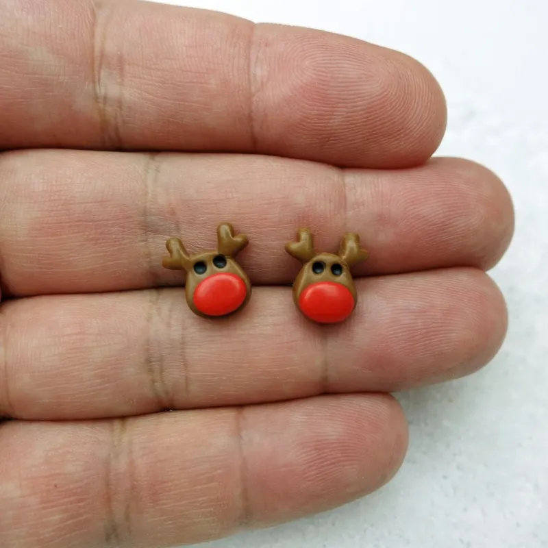 Rudolf the Red Nosed Reindeer stud earrings, lovingly handmade with Polymer Clay and Stainless Steel.