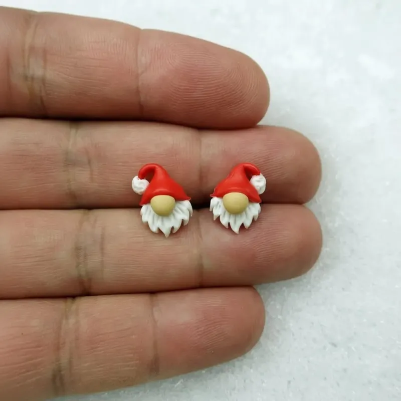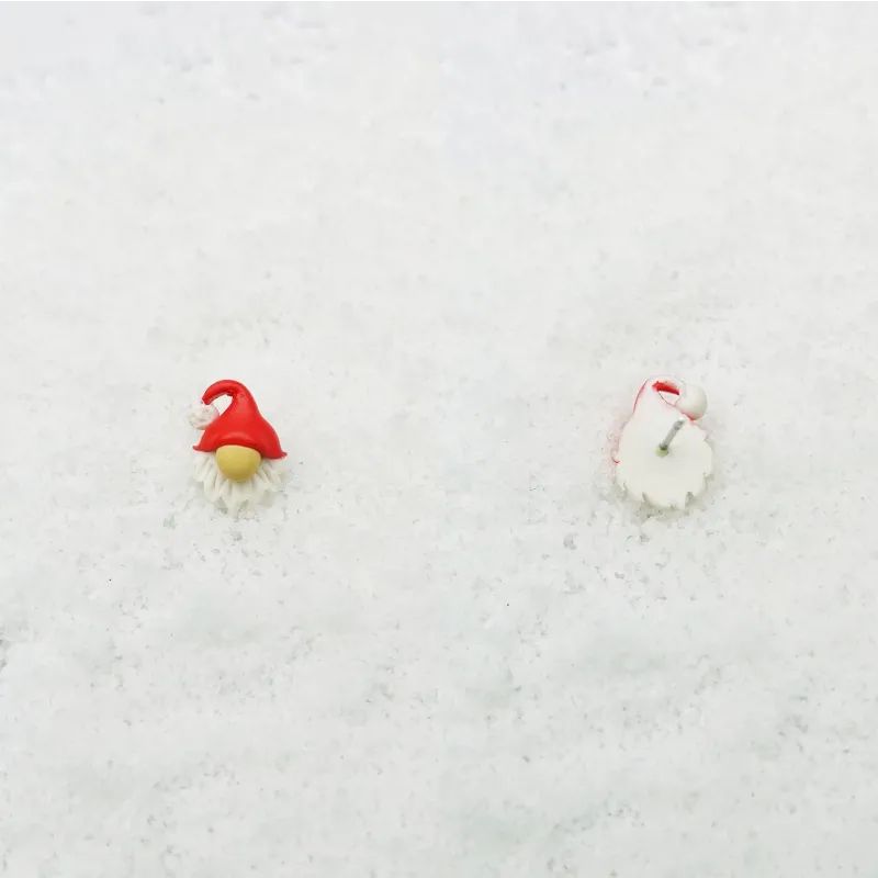 Handmade Santa Gonk (with hat) stud earrings, lovingly handmade with Polymer Clay and Stainless Steel.